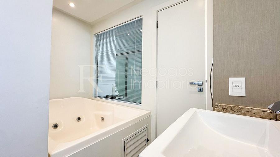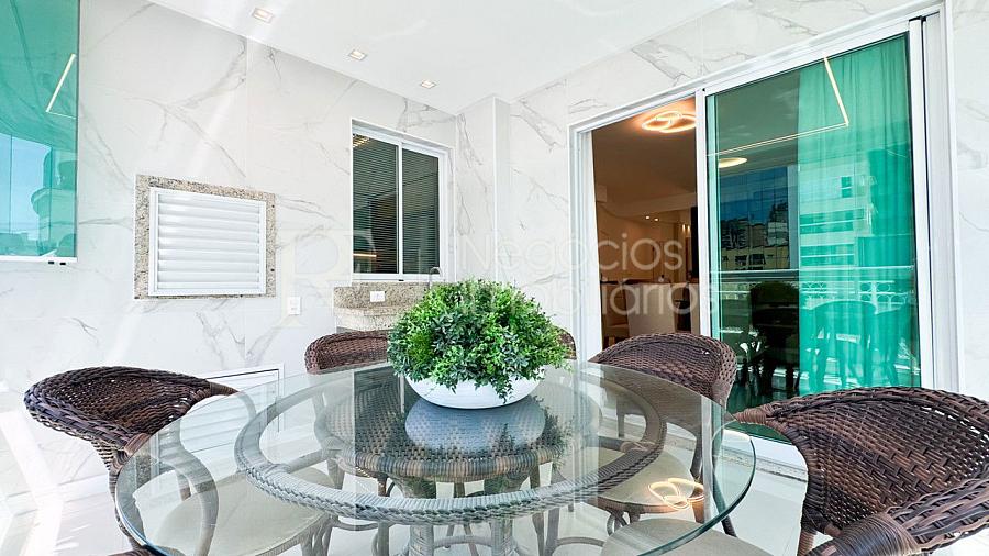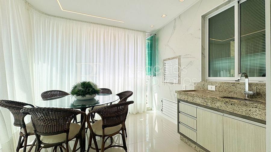 A sacada com churrasqueira é perfeita para reunir a família e os amigos, enquanto o ambiente interno encanta pelos detalhes de alto padrão, com mobiliário planejado, decoração refinada e equipamentos de qualidade.