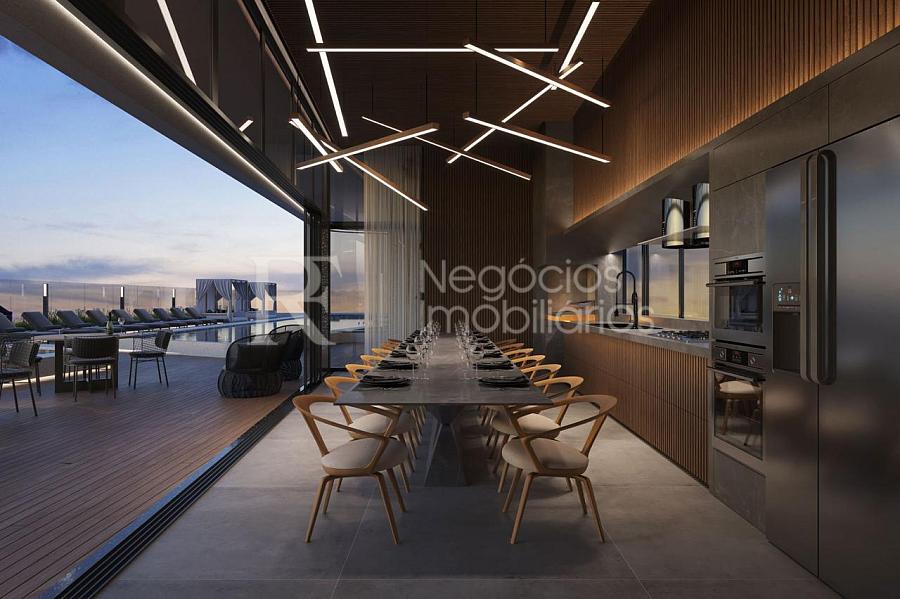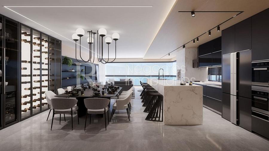 Este apartamento em construção, de altíssimo padrão, oferece 3 suítes amplas e bem distribuídas, proporcionando conforto, privacidade e uma experiência única todos os dias. O living integrado valoriza a vista permanente para o mar, criando um cenário exclusivo onde o azul do oceano faz parte da decoração.