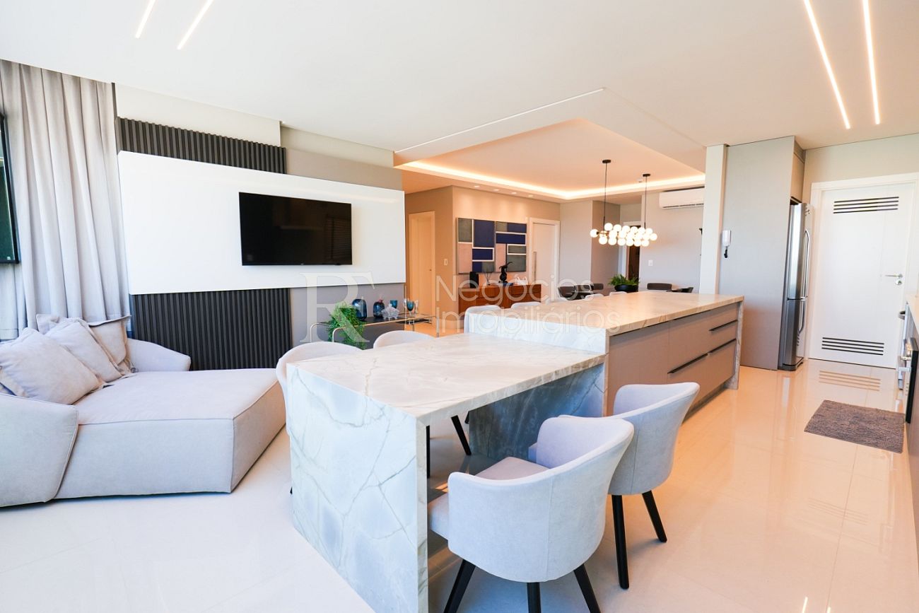 Ambientes amplos e integrados, mobiliado, equipado e decorado com extremo bom gosto, além de uma sacada integrada com churrasqueira para desfrutar bons momentos com família e amigos.