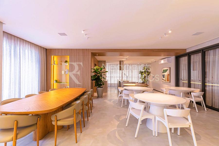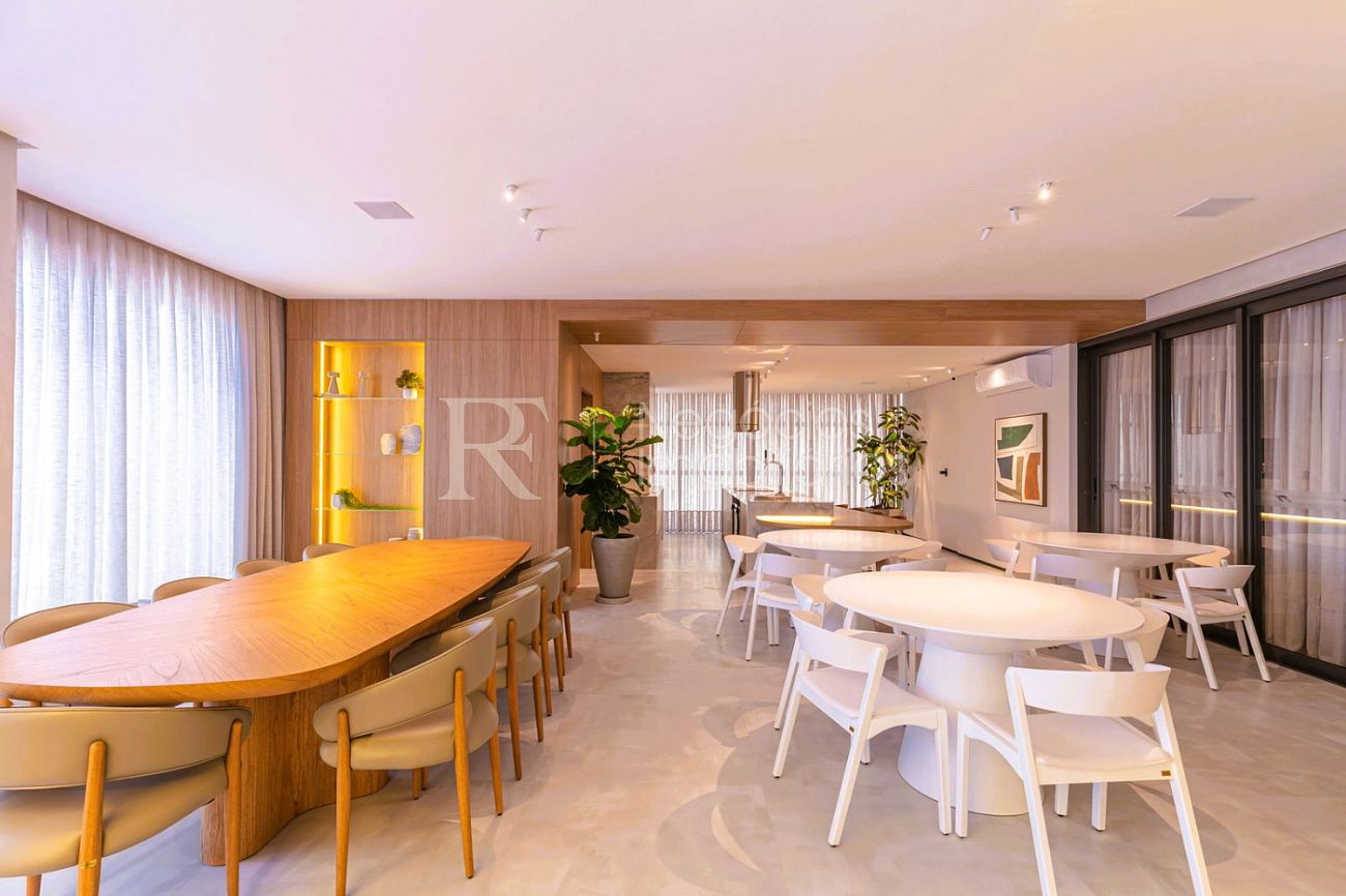 São 139 m² privativos muito bem distribuídos, com 3 suítes amplas que garantem conforto e privacidade. O lavabo elegante complementa a área social, enquanto o living valoriza a integração e a luminosidade natural.