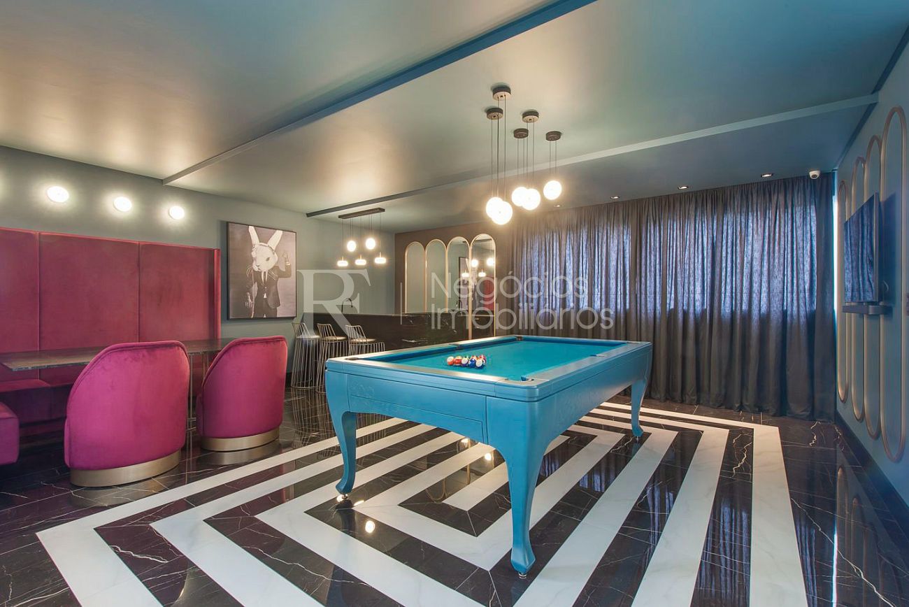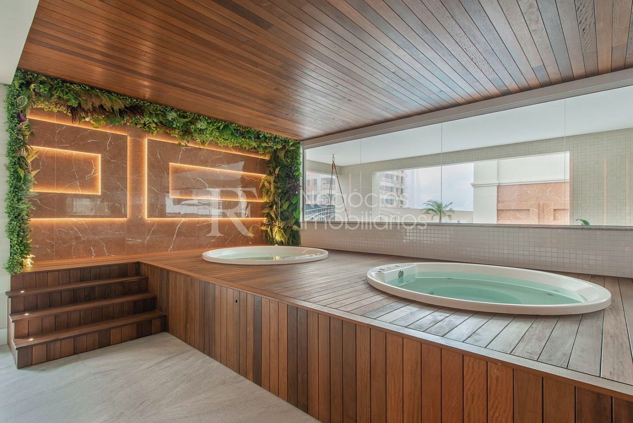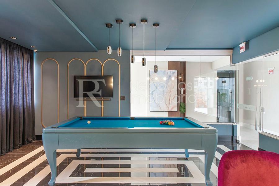 Empreendimento com lazer completo, incluindo piscina, academia, salões de festas, pub, spa, pista de caminhada e áreas gourmet, em localização estratégica próxima ao Hard Rock Café.